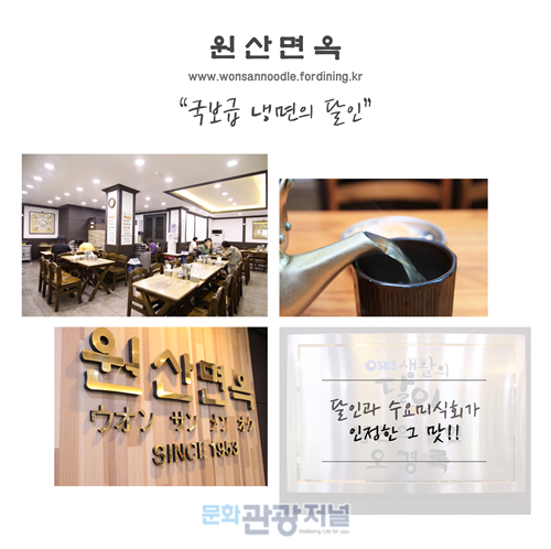 남포동에 위치한 원산면옥은 부산 냉면의 터줏대감으로 불린다. 60년이 넘는 세월을 우직하게 지켜오면서 부산 냉면에 대한 역사를 쓰고 있다. 세월이 세월인 만큼 원산면옥은 3대째 운영되고 있다. 1대 오길선 대표에 이어 현재 2대 오경록, 3대 오재욱 대표가 함께 운영한다. 대를 이은 대표들의 열정과 노력으로 뛰어난 냉면 맛과 꾸준한 품질을 자랑한다.