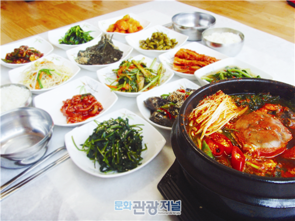 그 중 참게탕은 이화가든이 자랑하는 대표메뉴로 누구도 흉내 낼 수 없는 독특한 맛을 자랑한다. 시골에서 직접 말린 무 우거지를 부드럽게 삶아 넣고 직접 담은 된장과 고추장으로 밑간을 맞춰 뚝배기에 끓여낸 참게탕은 도저히 먹어보지 않고서는 그 맛을 표현하기 힘들다. 전 대표는 “참게탕은 드시고 나서 다시 포장해 가는 손님이 많다. 아마 드시고 맛이 있어서 집에 계신 분들을 위해 가져가시는 것 같다”고 전한다. 실제로 기자가 취재를 갔던 날에도 참게탕을 드시던 손님이 드시다 남은 것을 포장해 갈 만큼 이곳 참게탕의 인기는 대단하다. 사실 일반적인 요리와 달리 국물요리는 먹다 남은 것을 재포장해 가는 일은 극히 드문 일이다. 그러나 이곳에선 그러한 일들이 아주 자연스럽다. “바로 앞 섬진강에서 잡아 올린 신선한 자연산 참게를 가장 토속적인 방법으로 끓여 냈기에 먹는 사람들로 하여금 먹을수록 감칠맛을 느끼게 하는 것 같다”고 말하는 전 대표는 참게탕 이외에 참게장, 재첩국, 재첩회의 반응도 아주 좋다고 말한다.