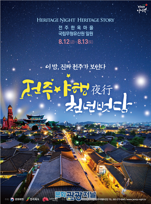 밤이 더욱 매력적인 계절, 한국의 가을이다. 가장 한국적인 도시, 전통문화가 살아있는 도시 전주에서는 특별한 가을밤을 준비한다. 한옥이 빼곡히 자리한 전주 한옥마을은 이미 1천만 관광객의 명소가 된 지 오래. 이제 전주 한옥마을의 생기 있는 낮보다 더 의미 있는 밤이 펼쳐진다. 각 도시가 품은 옛 건축, 유?무형문화유산과 문화 콘텐츠를 결합시킨 문화재청의 야행프로그램 공모에 전주가 당당히 선정돼 9월 30일~10월 1일 전주의 밤을 새롭게 선보인다. 전주한옥마을, 국립무형유산원 일원 거리마다 찬란한 밤을 품은 문화유산, 골목마다 숨겨진 전주 이야기가 관광객들을 맞는다.