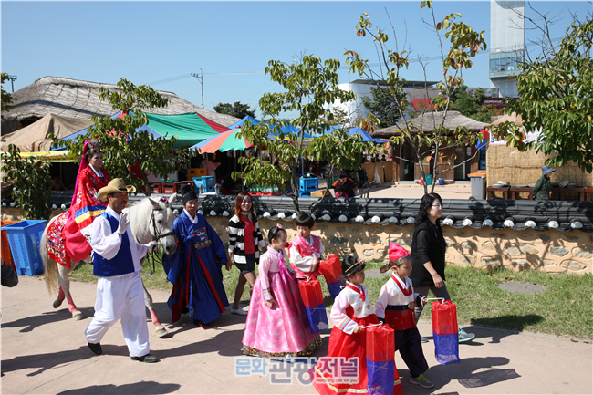 ì¡°ì„ ìœ¼ë¡œ ë– ë‚˜ëŠ” 시간여행 ‘ì›°ì»´ 투 ì¡°ì„ ’ì€ íŠ¹ížˆ 올해 야심차게 준비한 프로그램ì´ë‹¤. ì§€í‰ì„ ì¡°ì„ í•™ë‹¹ì„ ë§ˆë ¨í•´ ì „í†µí˜¼ë¡€ 체험과 한복체험, ì¡°ì„ ì‹œëŒ€ì˜ ì—¬ì¸ë“¤ì²˜ëŸ¼ 긴 머리를 틀어 올리는 ‘가채 ì²´í—˜’ì€ ë¬¼ë¡ , 사ë˜, 기녀, ì´ë°©, í¬ì¡¸, 무사, 꽃거지 ë“±ì´ ë“±ìž¥í•˜ëŠ” ì¡°ì„ ìºë¦í„° í¼í¬ë¨¼ìФ ì—´ì „ë„ ëˆˆê¸¸ì„ ëˆë‹¤. 지난해 호í‰ì´ì—ˆë˜ ì‹ ê´€ì‚¬ë˜ì „ì€ ‘ì‹ ê´€ì‚¬ë˜ ìƒì¼ìž”치’, ‘ì§€í‰ì„ 쌀 ë„ë‘‘ 찾아뼒 등 즉í¥ê·¹ì„ 추가해 시즌2로 ì—…ê·¸ë ˆì´ë“œë다.