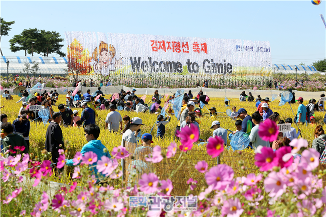 ê¹€ì œ 만경í‰ì•¼ëŠ” 한반ë„ì—서 ìœ ì¼í•˜ê²Œ 하늘과 ë•…ì´ ë§žë‹¿ì€ ì§€í‰ì„ ì„ ë°”ë¼ë³¼ 수 있는 ê³³ì´ìž, ìš°ë¦¬ë‚˜ë¼ ìµœëŒ€ì˜ ìŒ€ ìƒì‚° ì§€ì—ì´ë‹¤. 9ì›” 20ì¼ë¶€í„° 24ì¼ê¹Œì§€ 닷새간 ì²œí˜œì˜ ê³¡ì°½ì§€ëŒ€ë¥¼ 배경으로 열리는 ‘ê¹€ì œì§€í‰ì„ ì¶•ì œ’ì—서 ë†ì‚¬ë¥¼ 체험해 ë³´ì§€ 못한 사람들ì´ë¼ë©´ ìˆ˜í™•ì˜ ê¸°ì¨ì„ ì§ì ‘ ëŠë¼ëŠ” 귀중한 ê²½í—˜ì„ í• ìˆ˜ 있다.