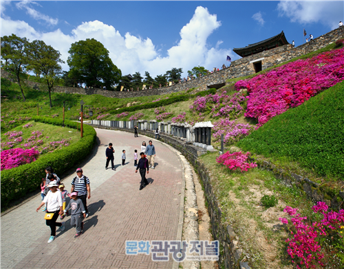 서문인 금서루에 올라 우측 성벽을 따라가면 구불구불 완만하다가도 때로는 급하게 흐르듯 이어지는데, 굳이 안내를 받지 않아도 만나게 되는 진남루(남문), 영동루(동문), 연지와 만하루, 광복루, 공북루(북문) 등에서 조선시대 문루건축을 감상할 수 있다.