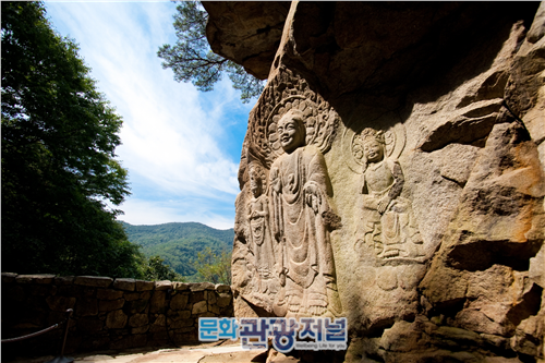 우리나라에서 발견된 마애불 중 가장 뛰어난 백제 후기의 작품,‘마애여래삼존상’은 얼굴 가득히 자애로운 미소를 띠고 있어 당시 백제인의 온화하면서도 낭만적인 기질을 엿볼 수 있다. 오랜 세월 수풀에 파묻혀 잠들어 있다가 1958년에 발견, 1962년에 국보로 지정됐다. 빛의 각도에 따라 미소가 오묘하게 변하는데, 아침 햇빛에 비치는 얼굴이 가장 아름답다고 알려져 있다. 백제인만의 부드럽고 세련된 기술이 느껴지는 이 조각은 비바람이 정면으로 들이치지 않게 80도로 기울어진 채 조각돼 과학적으로 우수하게 평가되고 있다.