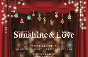 한국관광공사(사장 안영배, 이하 공사)는 오는 15일 충남 논산시 건양대 콘서트홀에서 드라마 미스터션샤인을 주제로 한류 이벤트 ‘선샤인앤러브(Sunshine&Love) 토크 콘서트’를 개최한다고 밝혔다.