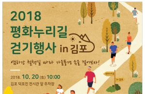 김포시와 경기관광공사는 ‘평화누리길 걷기행사 in김포’를 오는 10월 20일(일) 평화누리길 1코스 염하강 철책길 일원에서 개최한다고 밝혔다.