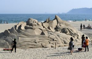 축구장 12배에 달하는 광활한 모래사장에서 모래로 만든 조각 작품이 속속 등장, 레저를 즐기기만...