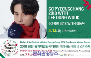 강원도와 한국관광공사가 함께 주관하는 2018 동계 패럴림픽과 함께하는 '3월의 스노우 페스티벌'에 지난 10일 장근석에 이어 13일 배우 이동욱이 출연한다.