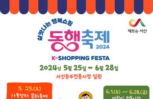 충남 서산시는 ‘살맛나는 행복쇼핑 2024 동행축제’가 5월 25일부터 6월 28일까지 서산동부전통시장 일원에서 진행된다고 밝혔다.