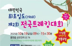 홍천군은 10월 19일 오전 9시 홍천군 상오안리 며느리 고개 일원에서 ‘대한민국 최초 임도(1968) 제2회 전국트레킹대회’를...