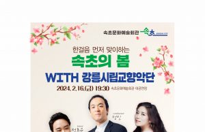 속초시는 속초문화예술회관 2024년 첫 번째 기획공연으로 “한걸음 먼저 맞이하는 『속초의 봄 WITH 강릉시립교향악단』”을 2월 16일 금요일...