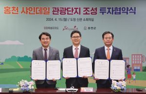 강원특별자치도와 홍천군은 4월 15일(월) 도청 신관 소회의실에서 세안레져산업(주)과 「홍천 샤인데일 관광단지 조성」 투자 협약식을...