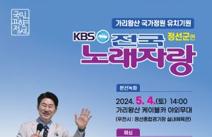 가리왕산 케이블카 개장 1주년을 기념하여 전국민의 대잔치 ‘KBS 전국노래자랑 정선군편’이 5.4.(토) 오후 2시, 가리왕산케이블카 야외무대에서 개최된다.