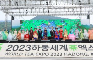 2023하동세계차엑스포와 한국의 멋을 홍보하기 위한 ‘찻잎 살포시 내려앉다’ 제목의 한복 패션쇼가 지난 26일 제1행사장 주무대에서...