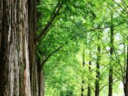 푸른 메타세쿼이아와 여름정취 더하는 보랏빛 맥문동