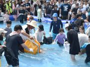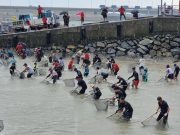 1일 홍성 남당항 대하축제장에서 열린 맨손 대하잡이 체험장에서 수많은 관광객들이 대하잡기 체험을 하고 있다.