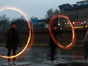 정월대보름을 사흘 앞둔 지난 21일 저녁 경남 함양군 함양읍 위천 징검다리에서 마을 주민들이 올 한해 건강을 기원하며 쥐불놀이를 하고 있다.