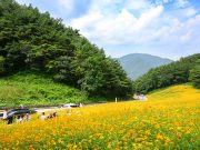 정선군, 병방산 군립공원 황금 코스모스 만개