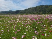 - 바다를 배경으로 한 호미반도 경관농업단지, 노란 유채 물결로 장관