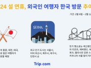 여행 서비스 기업 트립닷컴은 오는 2월 9일부터 12일까지 설 연휴 기간 한국을 방문하는 외국인 여행자들의 예약률이 지난 설 연휴 때보다 약 40%...