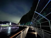 홍천군이 송학정교 잔도 산책로 약 317미터 구간에 경관조명 설치를 완료하고 점등을 시작했다.