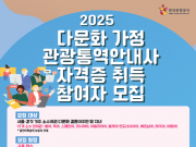 문화체육관광부와 한국관광공사(이하 공사)는 오는 9일까지 다문화 가정을 대상으로 2025 관광통역사안내사 양성과정에 참가할...