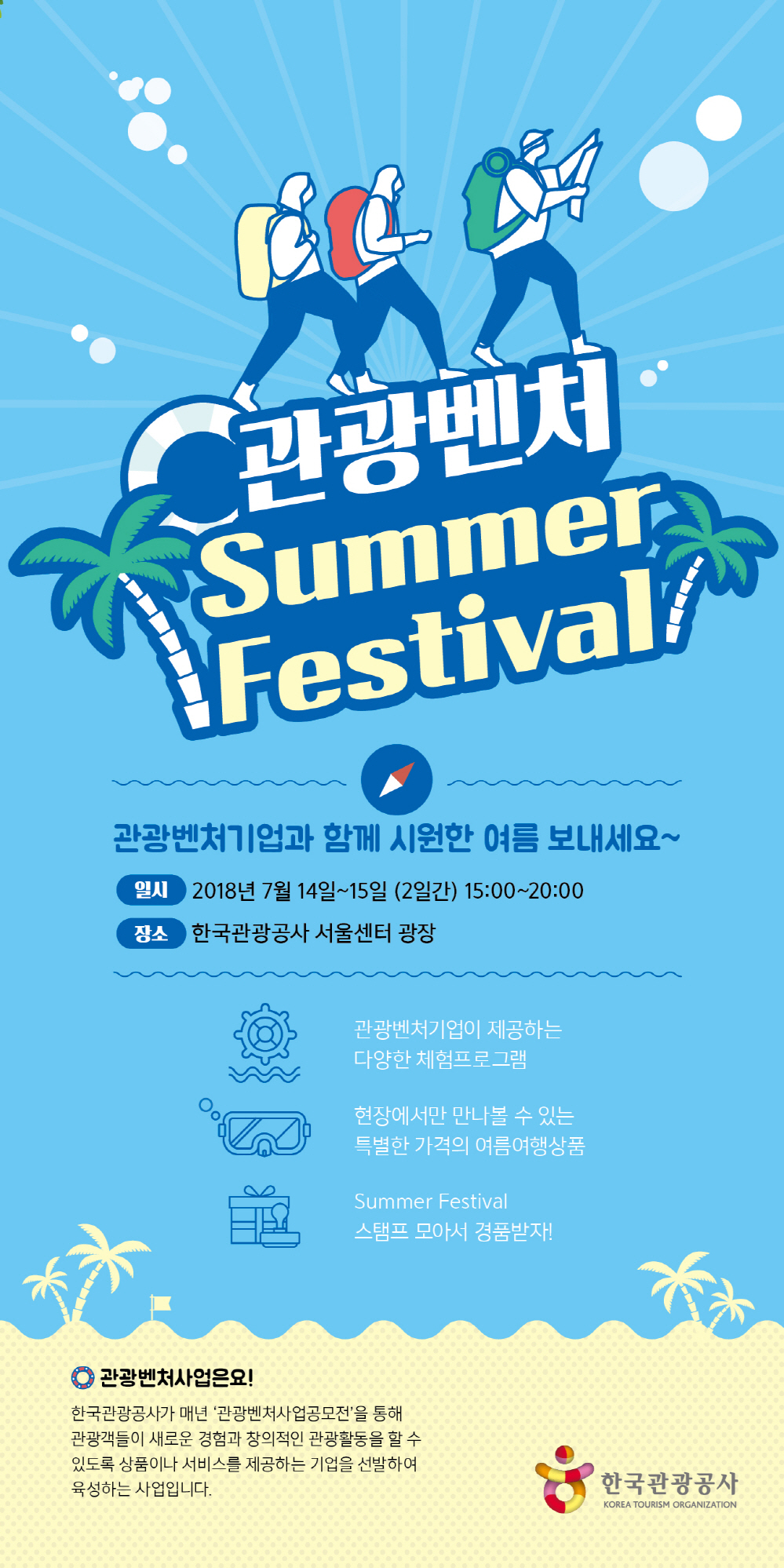 한국관광공사(사장 안영배)가 본격적인 여름 휴가철을 앞두고 ‘2018 관광벤처 여름 페스티벌’을 개최한다.