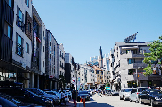 커피숍과 음식점, 최신 트렌드의 옷을 파는 상점이 밀집해 있는 이곳은 1층은 상가, 2∼4층은 주거지인 주상복합건물이 대부분이어서 한 건물당 거주자들이 4∼5대 이상의 차량을 소유하고 있다.