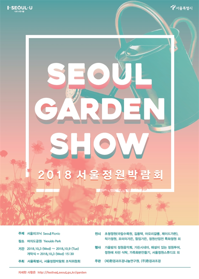 서울시는 오는 10월 3일(수)부터 9일(화)까지 7일간 여의도공원에서 「2018 서울정원박람회」를 개최한다고 밝혔다. 올해는 ‘서울피크닉’이라는 주제로 바쁜 일상 속에 잠시나마 휴식을 취할 수 있도록 특색 있고 다양한 시민참여 프로그램을 준비했다.