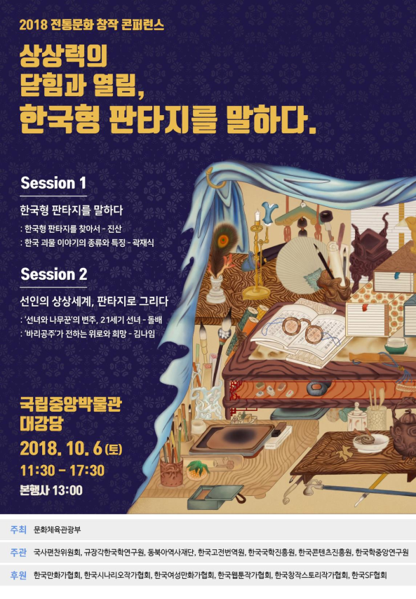 올해 학술대회에서는 전통문화 창작소재를 보유하고 있는 한국국학진흥원 등, 국내 7개 기관(한국국학진흥원, 국사편찬위원회, 규장각한국학연구소, 동북아역사재단, 한국고전번역원, 한국학중앙연구원, 한국콘텐츠진흥원)들과 창작자, 문화콘텐츠 관계자들이 참여한 가운데, 한국적 판타지 요소를 깊이 있게 이해하고, 선인들의 상상세계를 한국형 판타지 콘텐츠로 가공하고 확장할 수 있는지 그 가능성을 모색한다.