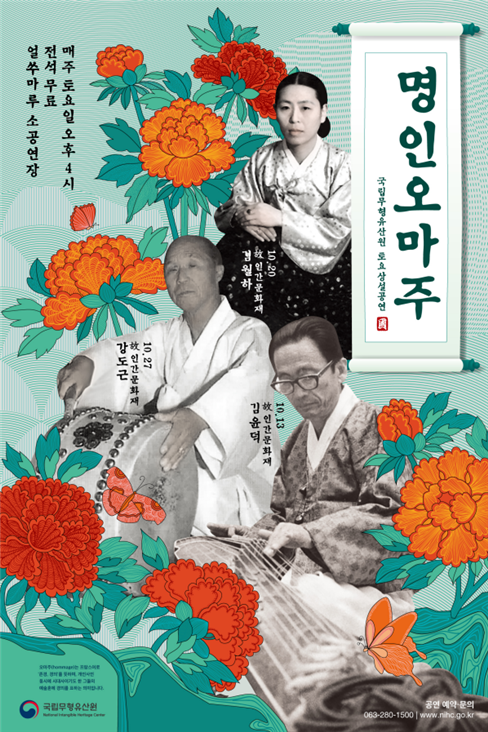 올해 ‘명인오마주’ 공연은 매주 한 명의 명인을 선정하고, 그 명인이 평생을 바쳐 이룩한 예술세계를 영상·사진·음반 등을 통해 살펴볼 계획이다. 이와 함께 명인에게 직접 전수를 받은 제자들이 스승에 대한 감사의 마음을 담은 헌정공연도 함께 감상할 계획이다.