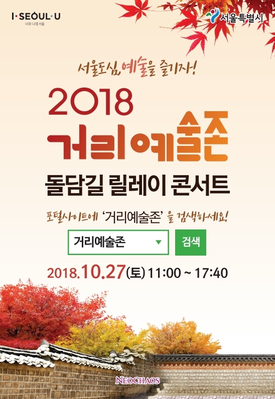2018 거리예술존 ‘돌담길 릴레이 공연’의 일정과 출연진 등 자세한 사항은 홈페이지(www.seoulbusking.com)를 통해 확인할 수 있으며, 기타 문의는 운영대행사 ㈜네오카오스(070-4101-8536)로 연락하면 된다.