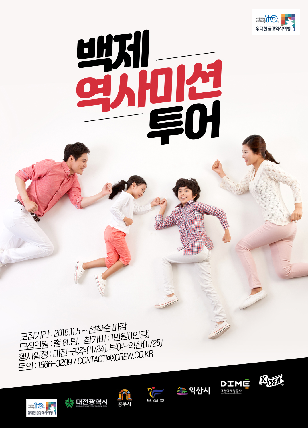 이번 테마투어에 참여하는 패밀리팀은 금강백제권역의 역사, 체험, 먹거리, 볼거리, 즐길거리를 온가족이 함께 나침반과 지도를 이용해 낯선 길을 찾아 수행하는 모험형 어드벤처를 만끽할 수 있는 즐거운 경험의 기회가 될 것이다.
