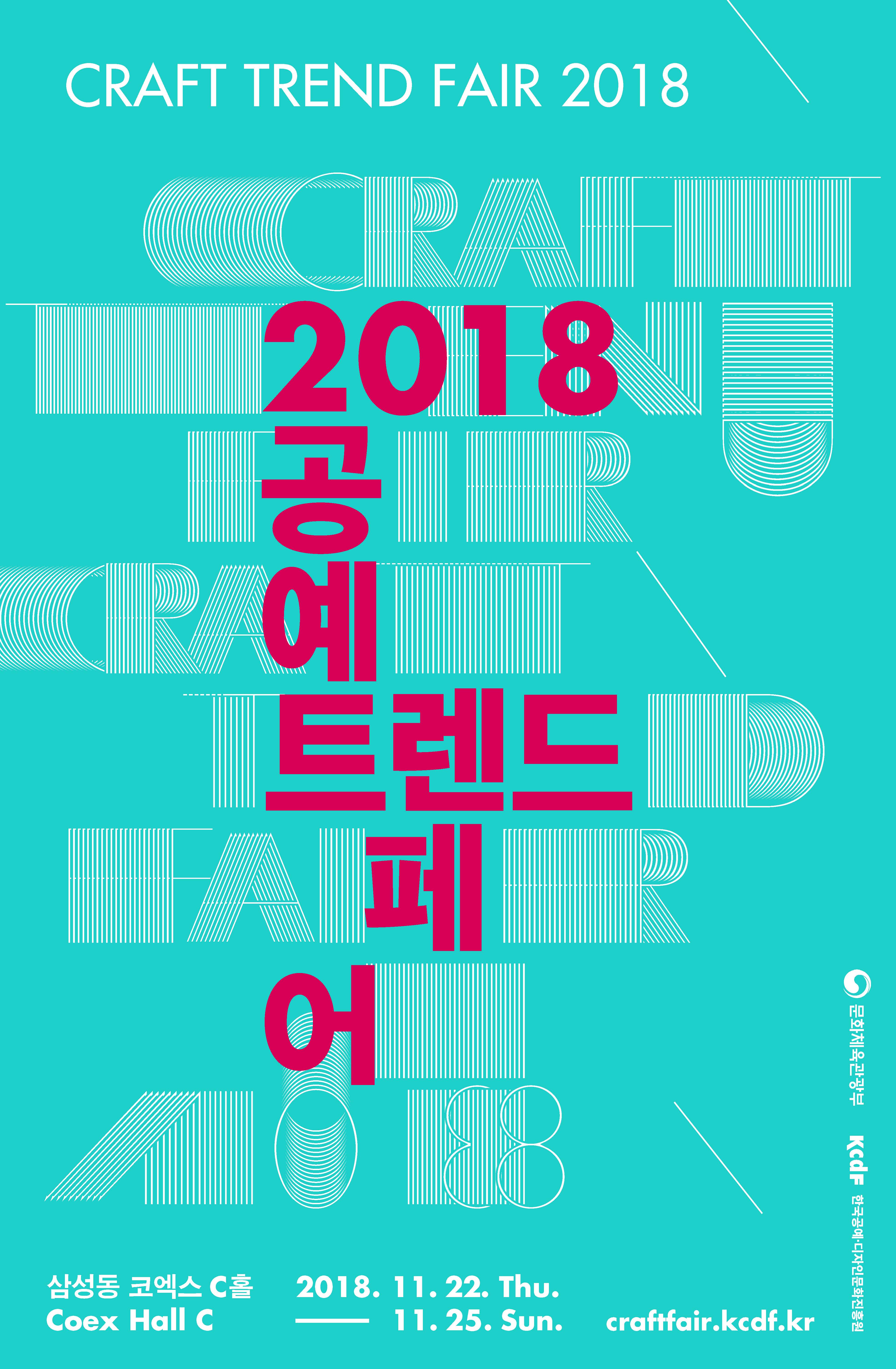 문화체육관광부(장관 도종환, 이하 문체부)가 주최하고 한국공예디자인문화진흥원(원장 최봉현, 이하 진흥원)이 주관하는 ‘2018 공예트렌트페어’가 오는 22일부터 25일까지 삼성동 코엑스 시(C)홀에서 개최된다.