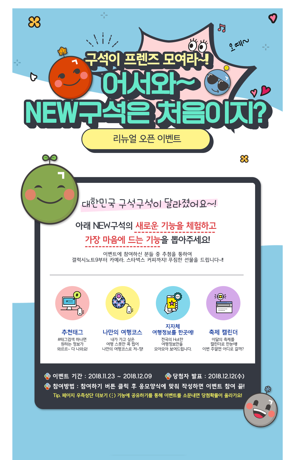 이번 개편의 핵심은 PC, 스마트 폰, 태블릿 등 다양한 디바이스 화면에 대응할 수 있는 ‘반응형 웹’ 기술을 도입해, 모바일을 우선 사용하는 소비자 환경(모바일 First)에서 편리하게 이용할 수 있도록 했다는 점이다. 또한 사용자가 여행정보를 쉽고 빠르게 이용할 수 있도록 메뉴체계를 전면 개편했다. 메뉴를 기존 30여 개에서 4개로 통폐합 했으며, 국내여행정보(4만 건)와 사진(45만 건)을 원스톱으로 탐색할 수 있도록 해시태그(#)와 통합검색 기능을 강화했다.