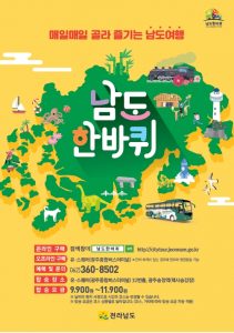 힐링이 필요해서. 푸른 자연과 함께 하고 싶어서. 현실에서 잠깐 벗어나기 위해. 사랑하는 사람과 함께하고 싶어서. 다들 가봤다고 하니깐. 여행을 떠나는 이유는 모두 제 각각이다. 같은 곳을 바라보고 있어도 느끼는 것이 다르고 심지어 보는 것도 다르다. 이유는 달라도 여행을 다녀오면 계속 반복되는 일상의 활력소가 된다. 여행이 필요하지만 여행지를 정하지 않았다면, 여행은 가고 싶지만 숙박, 교통, 식당 이것저것 정하기가 귀찮다면 전라남도 대표적인 관광 상품인 ‘남도한바퀴’를 통해 남도여행을 떠나보는 것은 어떨까?
