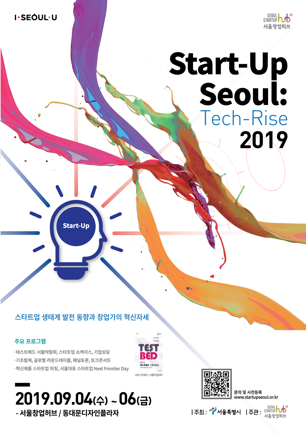 서울시는 최초의 글로벌 스타트업 축제인 「Start-Up Seoul : Tech-Rise 2019」를 9.4(수)~9.6(금) 3일간, DDP와 서울창업허브‧서울바이오허브 등 창업지원시설에서 개최한다고 밝혔다.
