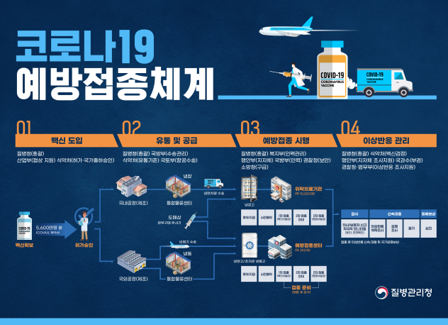 정부는 예방접종의 안전하고 신속한 시행을 위해 백신의 도입부터 허가, 유통, 예방접종 시행, 이상반응 관리까지의 전 과정을 범정부의 가용 자원을 총동원하여 준비하였으며 앞으로도 총력 대응한다고 밝혔다.