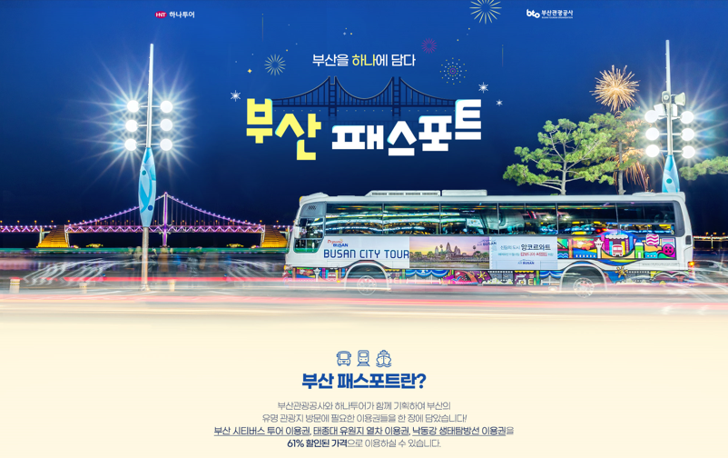 부산관광공사(사장 정희준, 이하 공사)는 국내 최대 여행사인 ㈜하나투어와 함꼐(이하 하나투어)가 공사가 운영하는 부산의 관광지 이용권을 한 장에 담은‘부산패스포트’을 공동 기획하여 한정 출시한다고 13일 밝혔다.