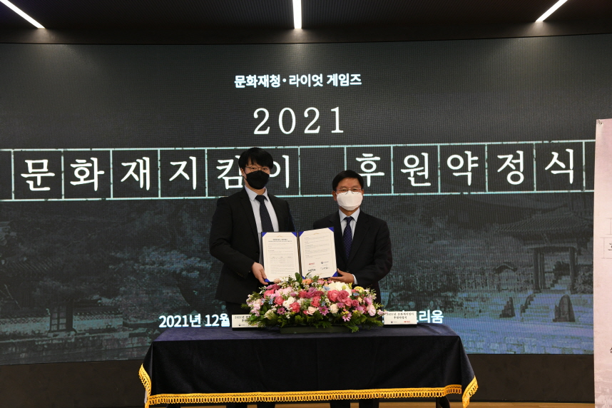 문화재청은 문화재지킴이 협약기업인 온라인 게임 개발‧서비스사인 ‘라이엇 게임즈(Riot Games; 한국대표 조혁진)’와 함께 2021년도 후원약정식을 9일 오후 3시 라이엇 게임즈 사옥 내 오디토리움(서울 강남구)에서 개최했다.