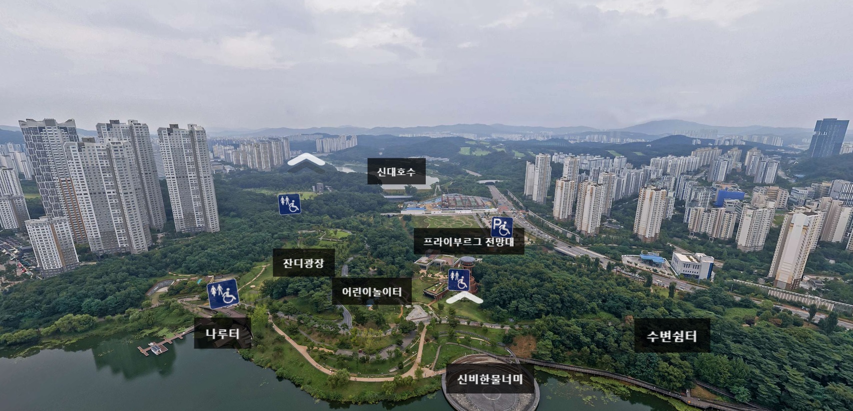 이용자는 화면 하단의 생략도(섬네일)를 선택해 직접 원하는 지점으로 이동할 수 있으며, 드론을 이용해 촬영한 ‘항공 VR’ 콘텐츠로 관광지의 전경도 감상할 수 있다.