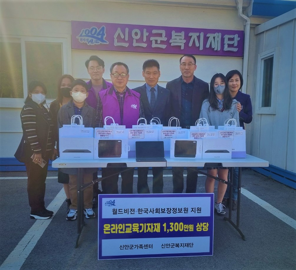 신안군복지재단은 신안군가족센터와 함께 지난 25일 다문화·한부모가정 13세대 아동에게 1,300만원 상당의 온라인교육기자재를 전달했다.