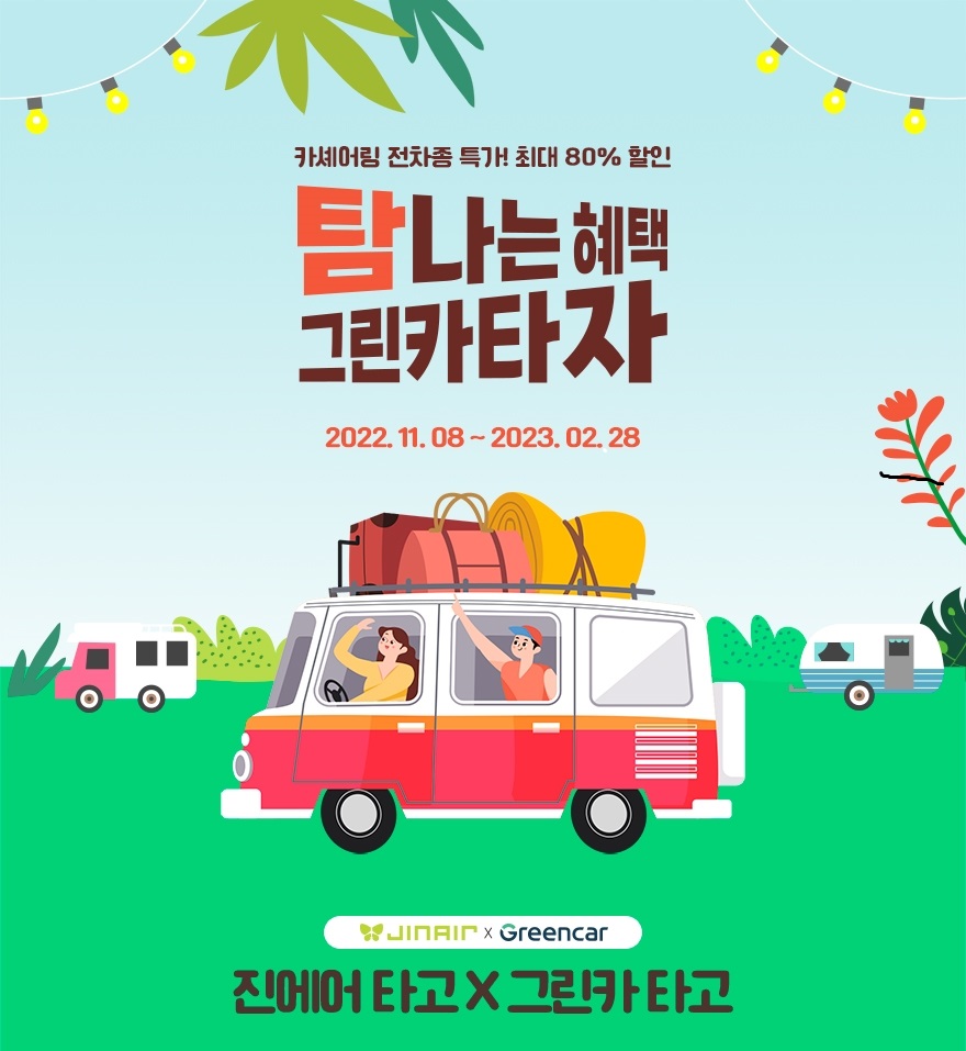 진에어(www.jinair.com)가카셰어링 브랜드 그린카와 함께 국내 여행족을 위한 제휴 프로모션을 진행한다.