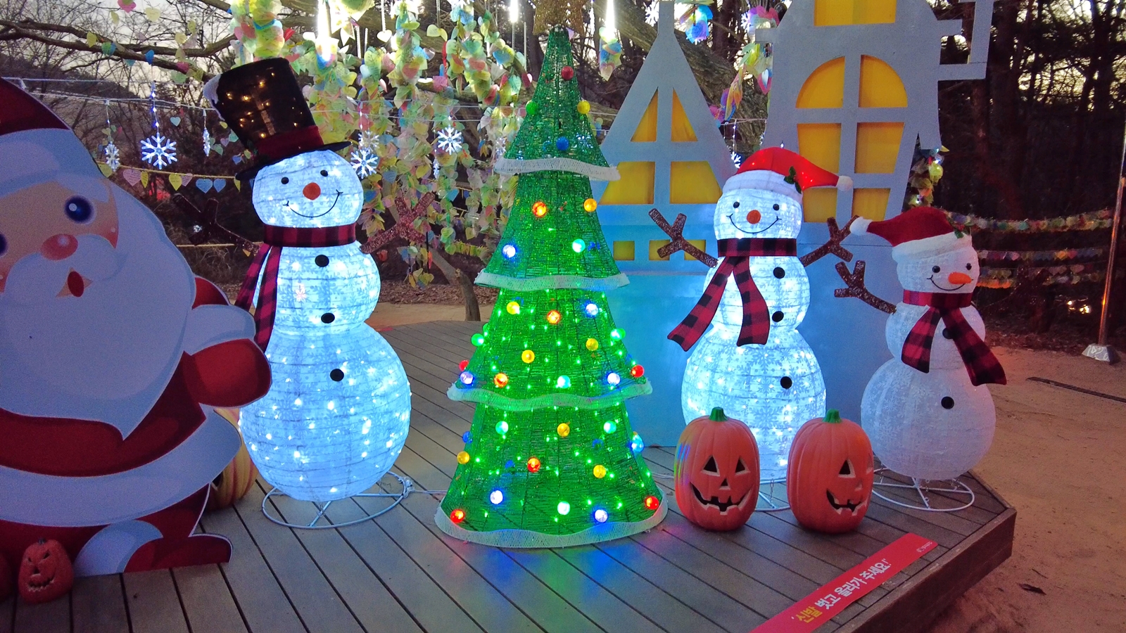 형형색색 반짝이는 빛으로 가득한 주작대로를 지나 경주타워 앞에 도착하면 크리스마스 장식으로 화려하게 꾸며진 대형 트리가 방문객들을 반겨준다.