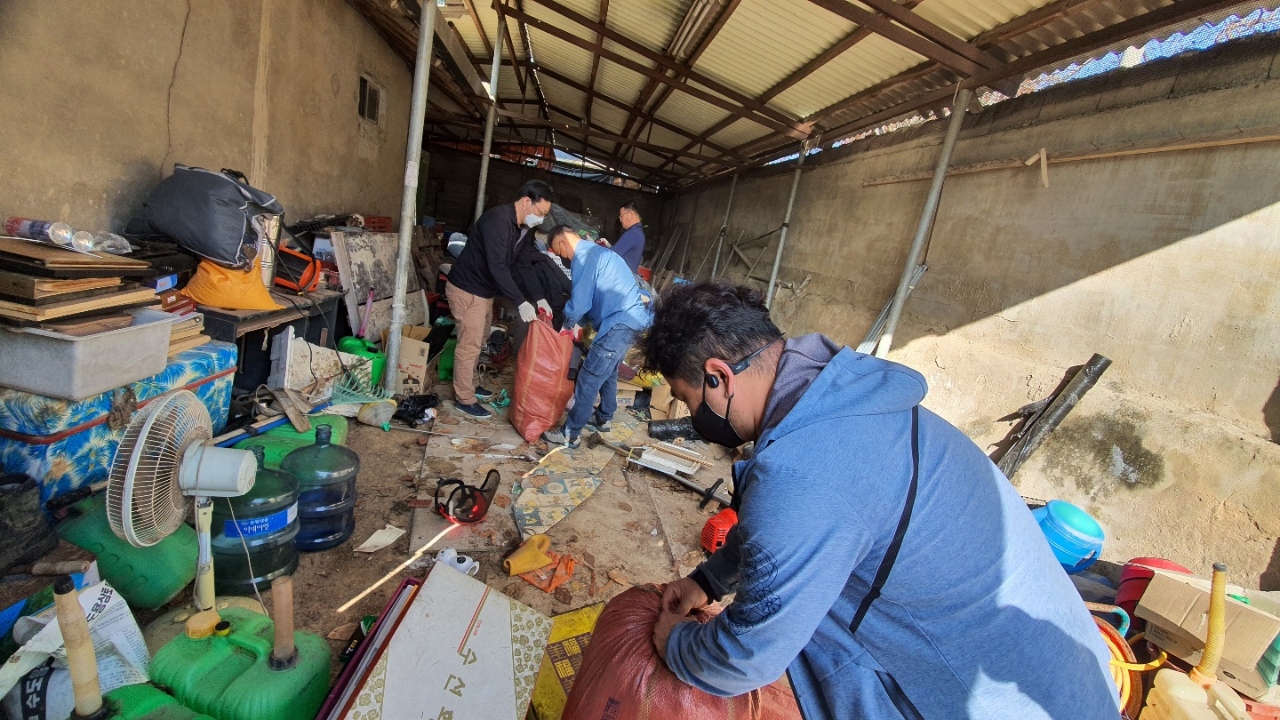 이날 박영수 회장을 비롯한 10여명의 회원들은 구슬땀을 흘리며 집 안 가득 차 있던 쓰레기, 고물, 폐가전 등을 밖으로 꺼내고 청소해 쾌적한 환경을 만들었다.