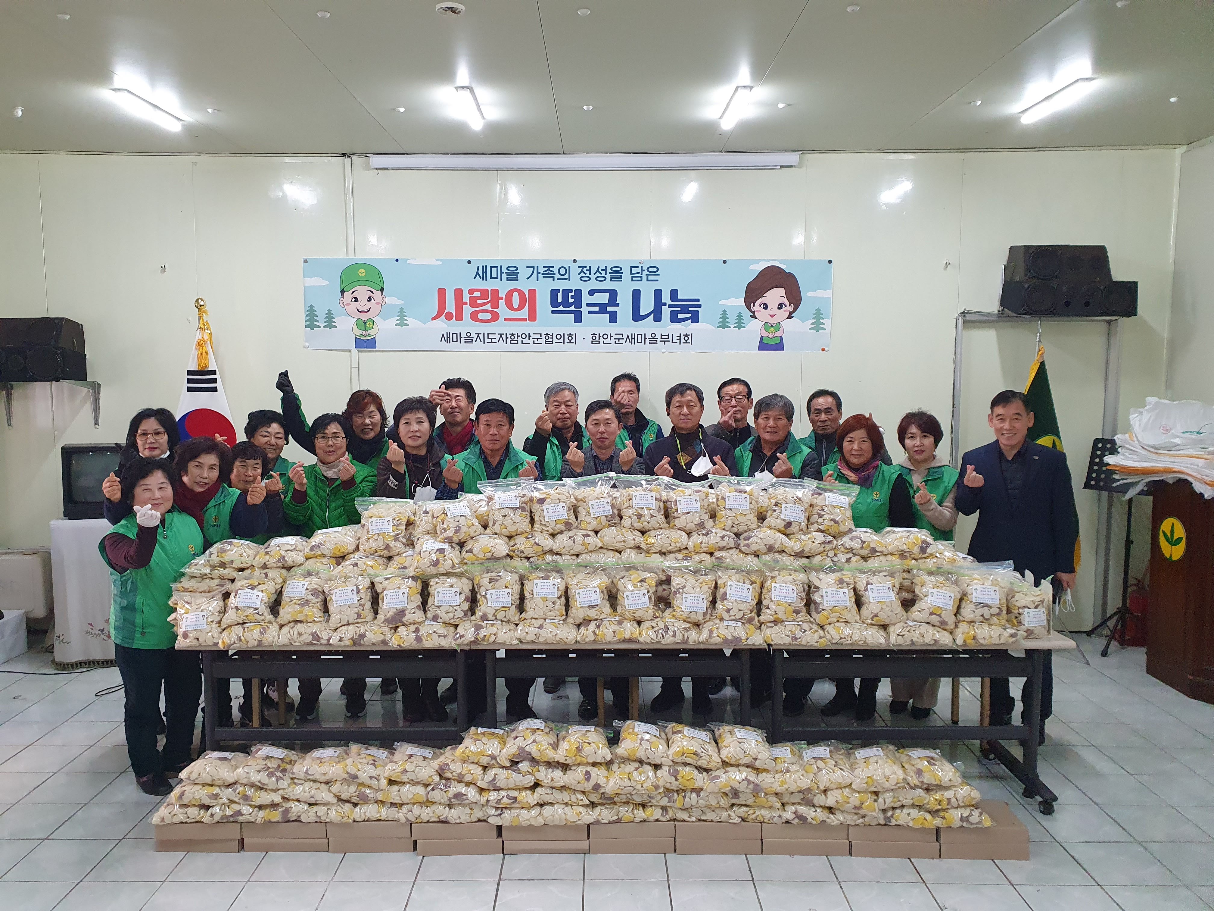 관내 10개 읍‧면의 어르신들과 5개 시설을 대상으로 새해 건강을 기원하는 마음을 담은 삼색 떡국떡 800kg을 나누는 이번 행사는 새마을운동의 역점사업인 ‘공동체 운동’을 통해 함안의 건강한 지역 공동체문화를 형성하기 위해 기획‧실시됐다.