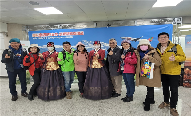 제주특별자치도와 제주관광공사는 24일 제주국제공항 국제선 입국장에서 티웨이항공의 타이베이-제주 직항노선 신규 취항 기념 환영행사를 진행했다고 밝혔다.