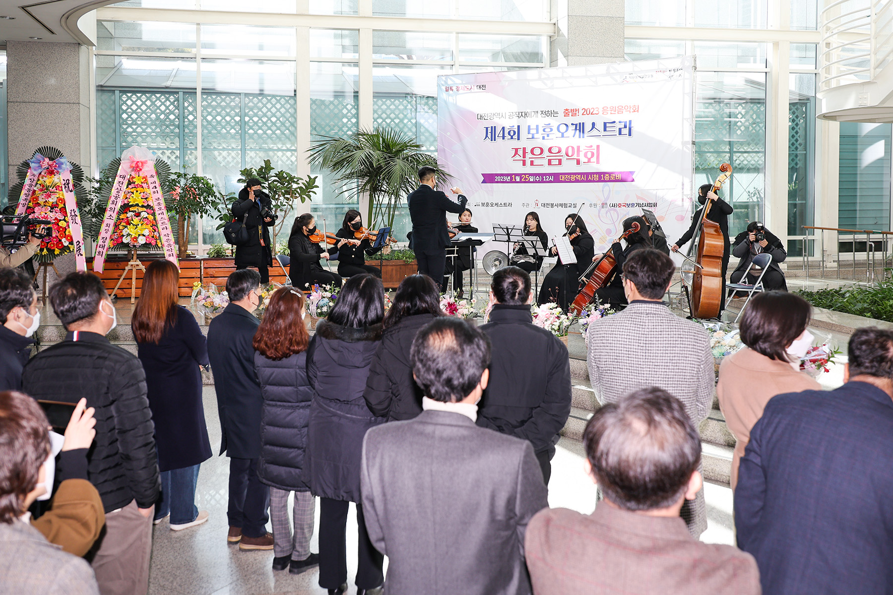 대전봉사체험교실은 보훈오케스트라와 함께 25일(수) 새해를 맞아 공직자를 위한 응원의 메시지를 담은 작은음악회를 열었다. 음악회에는 이장우 대전시장을 비롯한 대전시 공직자 등이 자리를 함께했다.