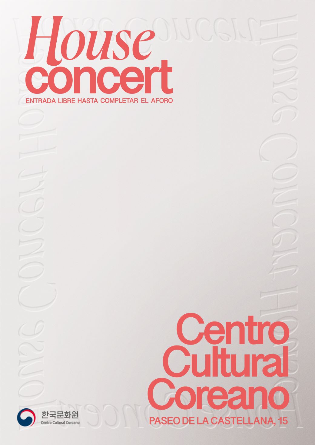 주스페인 한국문화원은 유럽에서 예술을 전공하고 아티스트로서의 커리어를 개척하고 있는 신진 한국인 음악가들을 소개하고자 2023년 첫 공연 사업으로 ‘하우스 콘서트’를 선보인다. 예술 분야를 전공하기 위해 많은 한국인들이 유학하는 유럽에서 한국문화원이 직접 음악가들의 유럽 무대 진출의 발판을 제공하고 스페인 현지에 유망한 한국인 아티스트를 소개하는 것이 기획 의도이다.