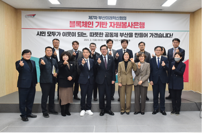 부산시(시장 박형준)는 오늘(7일) 오전 9시, 이태석신부기념관(서구 남부민동 소재)에서 박형준 시장 주재로 「블록체인 기반 자원봉사은행 활성화 방안」을 논의하기 위해 제7차 부산미래혁신회의를 개최했다고 밝혔다.