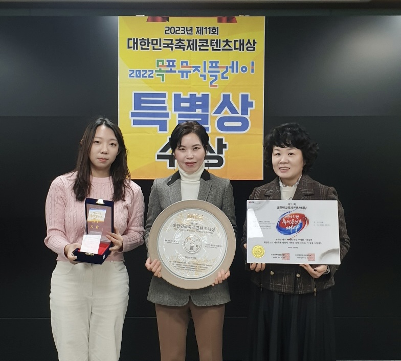 ‘대한민국축제콘텐츠대상’은 ㈔한국축제콘텐츠협회가 주최하고 서울특별시와 한국관광공사가 후원하는 상으로, 지역축제콘텐츠 산업에 크게 이바지한 지방자치단체와 지역 축제 관계자들을 선정해 시상한다.